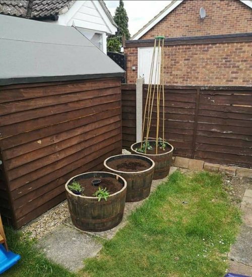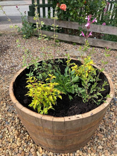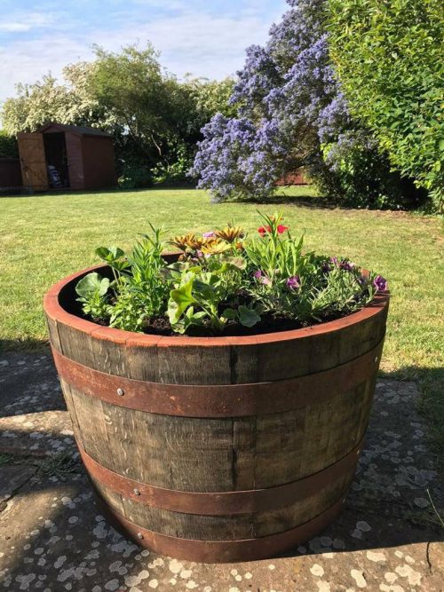 Original Oak whisky barrels, cut down to size to make these beautiful planters.